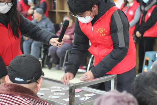 本次活动以“温情陪伴,暖心冬至”为宗旨,旨在通过丰富多彩的文艺表演和亲手制作的节日美食,丰富老人们的精神文化生活,传递青年一代的敬意与关怀。活动内容精心设计,集艺术性、互动性与实用性于一体。志愿者和大艺团成员们首先献上了一场温馨热闹的文艺演出:合唱《微微》轻柔开场,太极表演刚柔并济展现传统养生文化,独唱《我只在乎你》勾起往昔回忆,一曲《歌唱祖国》引发全场合拍跟唱,将气氛推向高潮;活力四射的舞蹈《快乐崇拜》赢得了阵阵掌声与欢笑;深情的朗诵与巧妙的魔术表演,更是拉近了心与心的距离。