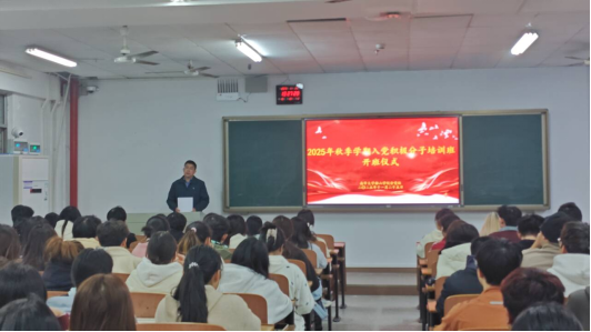 11月25日晚,船山学院分党校在南华楼213教室举行2025年秋季学期学生入党积极分子培训班开班仪式。船山学院党委书记、分党校校长阳剑兰,各支部书记以及本期全体入党积极分子共同参加。仪式由培训班班主任周英主持。